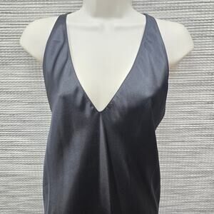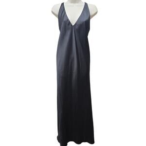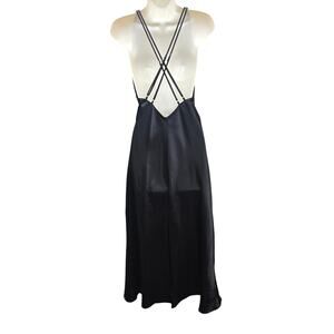 VTG Fredericks of Hollywood Maxi Slip Dress Nightgown Womens Size Medium Black Satin Adjustable Strappy Back V-Neck y2k Whimsigoth