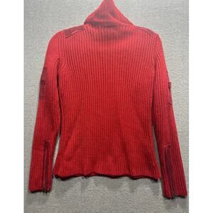 VTG Free People Cardigan Sweater Full Zip Sleeve Zipper Pocket Red Womens Size M