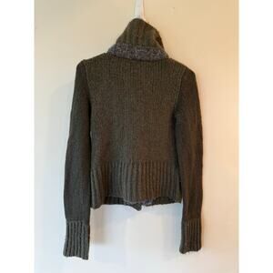 VTG Free People Cardigan Sweater Womens Forest Green Chunky Knit Mock Neck Y2K