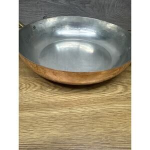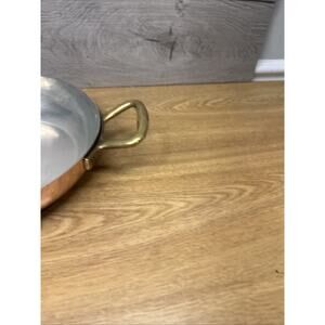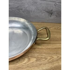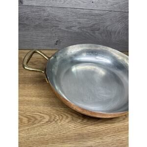 VTG French Hammered Copper Au Gratin Casserole Pan Tin Lined 10” Brass Handles