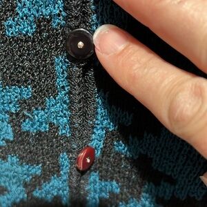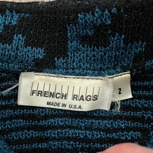 VTG French Rags Womens Long Sweater Cardigan Size 2 Teal Blue Black Houndstooth