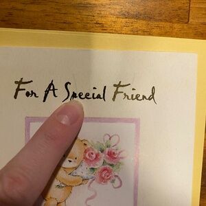 Gift for friend, Y2K, vintage, 2000s, poem, greeting card, teddy bear, spring, pink, yellow, floral, white, friendship, tan, soft design