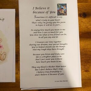 The 'I Believe It Because Of You' card is from 2001 by Ron Hatcher - unique and rare!