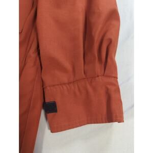 The rust orange color is sure to make you stand out, and the hood will keep you warm and dry in any weather. This coat is in great condition for its age and is sure to last for years to come.