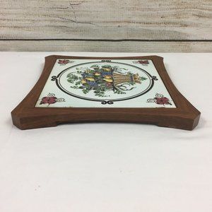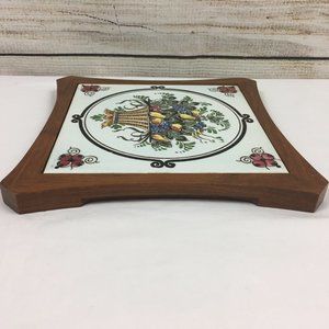 VTG Fruit Basket Tile Wood Trivet Decor
