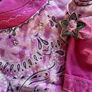 VTG Fruit of the Loom Paisley Bandana T Shirt Western Dolly Parton Cotton Pink L