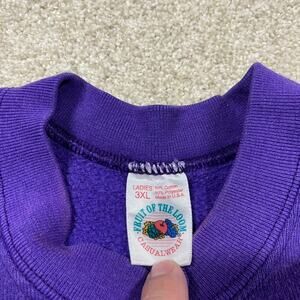VTG Fruit of the Loom Sweatshirt Womens 3XL Purple Raglan 80s Grunge Retro