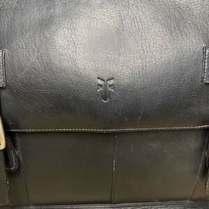 VTG Frye Briefcase Black Leather Soft Side Flap Top Buckle Strap Shoulder Bag