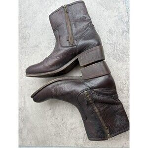 VTG Frye Brown Leather Ankle Short Boots Zip Western Style Casual Womens 8