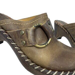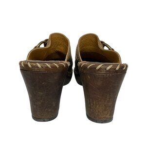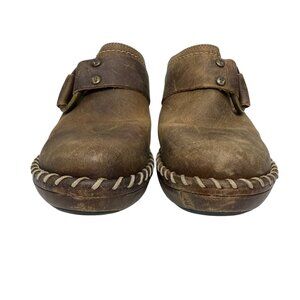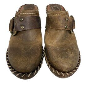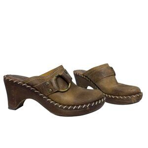 VTG Frye Charlotte Leather Distressed Brown Buckle Mules Clogs Women's size 8