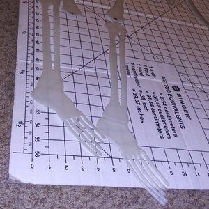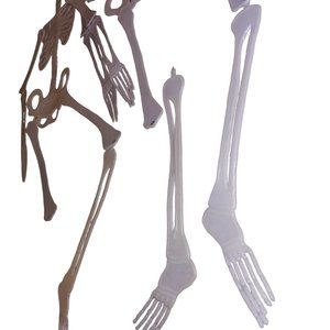 Vintage Fun World glow in the dark skeleton props, lot of 2, in good condition. One skeleton is missing a bone and the other skeleton's bone is broken. Please view all photos for skeletons general used condition and measurements.