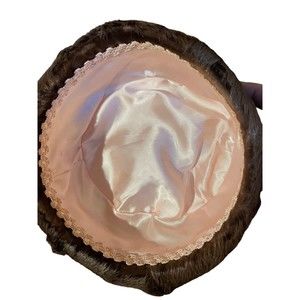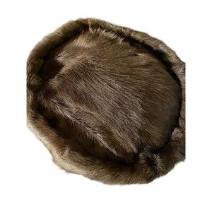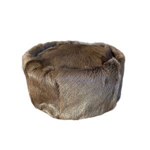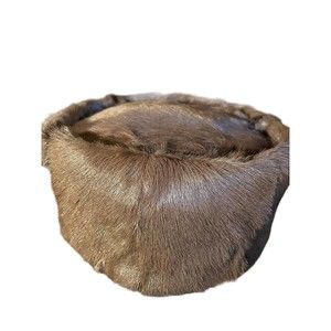 This vintage hat is made of a brown real fur. The inside is lined with a peach colored satin. No brand markings but this is indeed a quality made hat. Darling retro pillbox hat.