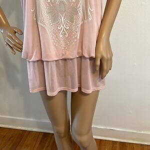 VTG G Collection XL Baby Pink/ Gray Fairy Core Feminine Embroidery Print Tunic