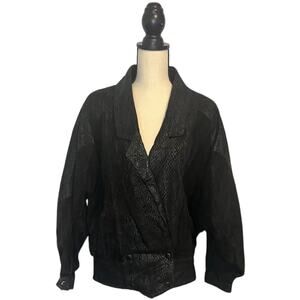 VTG G3 G-III Womens Leather Jacket Black Size S Embossed Snake Designer Pattern
