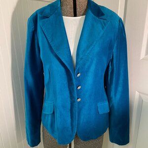 VTG GEORGE TEAL COTTON VELVET SIZE 16 JACKET WITH JEWELED BUTTONS