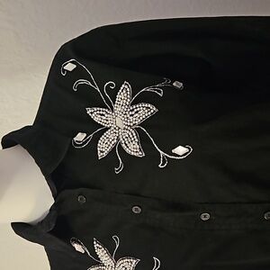 VTG GITANO 1980's Black Floral Jeweled Bedazzled Cowboy Core Button Down Shirt