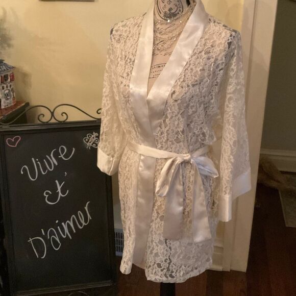 *VTG GLAM* Victoria Secret Gold Label Ivory Lace Robe