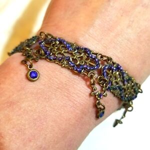 Gorgeous Vintage designer signed Glassworks Studio antiqued brass Necklace featuring Purple Swarovski Crystals in a Lacy Filigree design. Very Renaissance looking! In excellent Vintage condition. Measures 16" to 18". You'll love this Feminine Beauty!