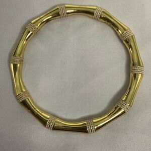 VTG GOLD TONE HEAVY BEVELED BANGLE BRACELET 3”