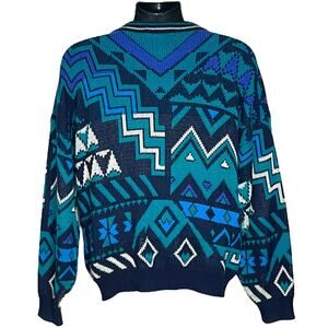 Up for sale, a vintage mens colorful geometric sweater by Botany 500. It is vintage 1980s 1990s and is in very good preowned condition. It is marked a size XL.