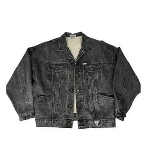 VTG GUESS Georges Marciano Jacket Mens Black Acid Wash Denim 80s Medium