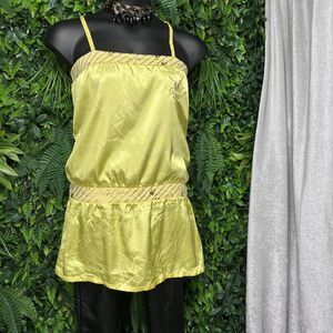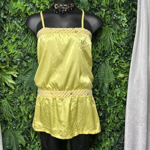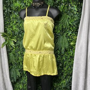 VTG G-UNIT Women Tops XL Yellow Graphic Embroidered Spaghetti Strap Blouse 1676