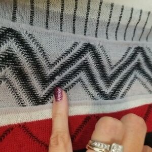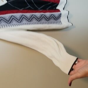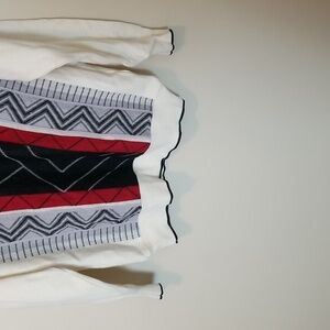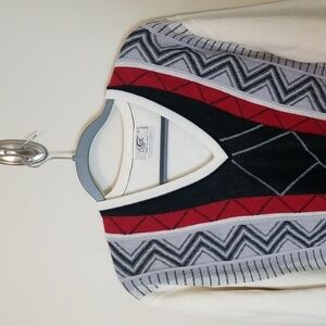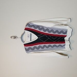 VTG Gabicci White/Red/Black Abstract Print Wool Blend V-Neck Sweater Size Medium