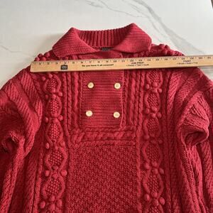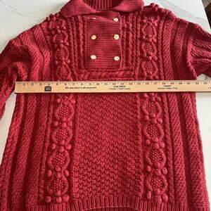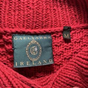 VTG Gaeltarra Ireland Cable Knit Chunky Pullover Sweater Red Combed Cotton Sz M