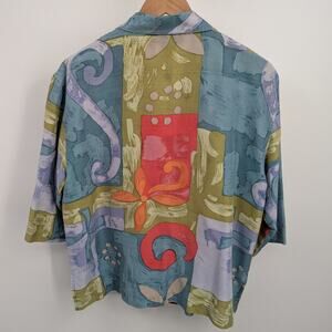 VTG Galinda Wang 100% Silk Abstract Button Down Shirt Size 10 Boxy Blouse Boho