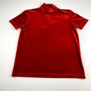 VTG Gap 90's Red Velvet Top Short Sleeve Mock Neck Womens MED Whimsigoth Xmas