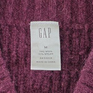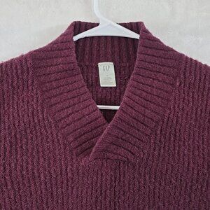 VTG Gap Mens Wool Blend Sweater V Neck Stretch Burgundy Maroon Knit Size Med