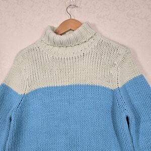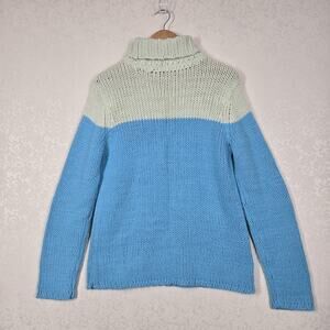 VTG Gap Wool Blend Turtleneck Sweater XL* Turquoise Green Colorblock Chunky Knit