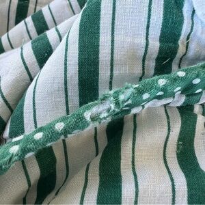 Vintage Garden Floral Block Reversible Quilt. Hand Quilted. Featuring blocks of different flowers, plaid and polka dot diamond blocks, and a striped border with polka dot binding. The back is striped. This is such a charming a lovely quilt! The pictures don’t do it justice.