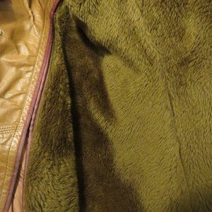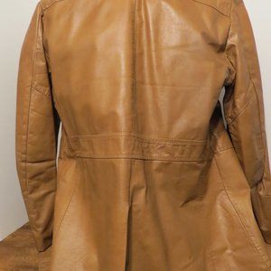This vintage leather coat by Gateway Collection has a zip out faux fur lining. Both the coat and lining are in excellent condition with no defects noted. This item looks nearly new inside and out. Even the leather coated buttons (shaped in true 70s style!!) are in great condition. Photo of worst condition button is shown (minimal wear). Size 40. Dark Camel in color.