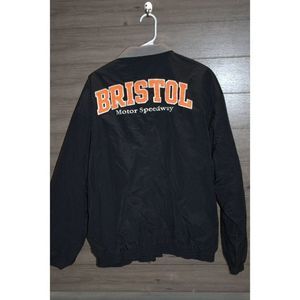 • Vintage, NASCAR, large embroidered Bristol Motor Speedway on back, fleece lined, small "Bristol motor Speedway," on left front, mock collar, long sleeves, full zip