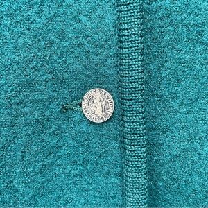 Beautiful forest green 100% wool vintage piece. Ornate coin buttons. Metal logo plate on front pocket. Made in Austria.