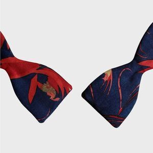 VTG Georgina Von Etzdorf Bird Floral Silk Self Tie Bow Tie Navy Red England RARE