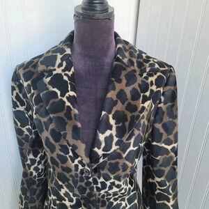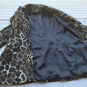 VTG Georgiou Studio Brown Black Blazer Jacket Lined Soft Animal Print Sz 10
