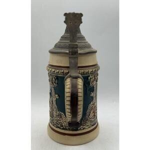 VTG German Beer Stein 0.5L Pewter Lid Relief Scene Marked 1005 Bavaria Style