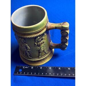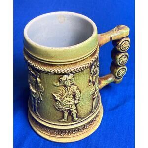 This charming Gerz German beer stein stands 5.5" tall and features a delightful scene of musicians. The stein is crafted from green ceramic, showcasing a medieval Renaissance style. Please note that this stein is in good pre-owned condition and does not include a lid. Please review all photos carefully to assess its condition. Perfect for collectors or anyone who appreciates fine German craftsmanship! Cheers!