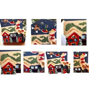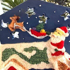 Stunning Navy blue background with a house that Santa & Rudolph are flying over