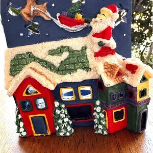 This is a hard to find candle holder, featuring Rudolph & Santa...a treasure for years to come