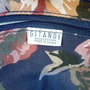 VTG Gitano 80's/90's Navy Floral Cotton Canvas Duffle Weekender Bag. Beautiful, navy bag with large floral pattern. Faux leather rolled straps. Nylon rectangle base to add light support. Zipper closure. Interior zip pocket.