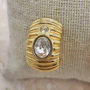 VTG Givenchy Gold Tone Shrimp Rhinestone Post Back Pierced Earrings. Gorgeous ridged "shrimp" style have crescent earrings with two clear varied size rhinestones.