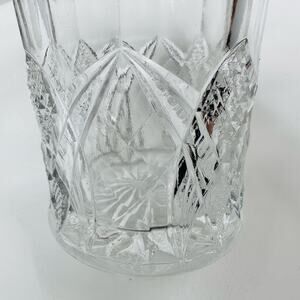 Vintage Clear Glass Pressed Crystal Anchor Hocking, Set of 5, kitchen/bar, party, Christmas, Serveware, Drinkware, Tumblers with a sunburst bottom design.