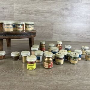 VTG Glass Bottles of Metal Luster Powder Paint for Ceramics Lot Of 32 from 1960s