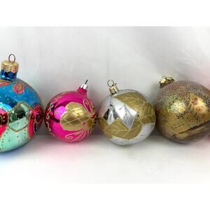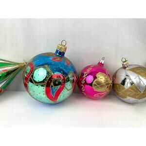 VTG Glitter Glass Ornaments Lot of 6 Round Sphere Hand Painted Germany