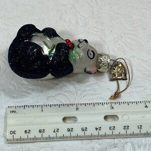 VTG Glitter Panda Bear Holiday Christmas Blown Glass Tree Ornament