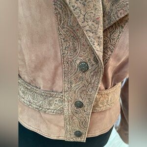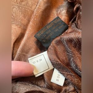 Vintage GIII brown leather aviator/bomber jacket, women’s size small. Gorgeous multicolor paisley/geometric design on collar/trim. EUC, some signs of normal wear that is expected with a vintage piece. No rips, holes, stains or odors. Please see photos for item details/dimensions. Some photos may appear different in color due to lighting. Ships from smoke-free home.