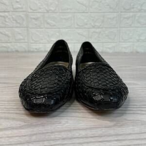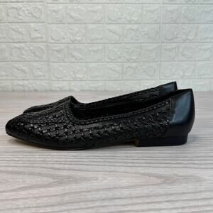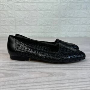 VTG Gloria Vanderbilt Ballet Flats US 6.5 Black Woven Leather Slip-On Dress Shoe